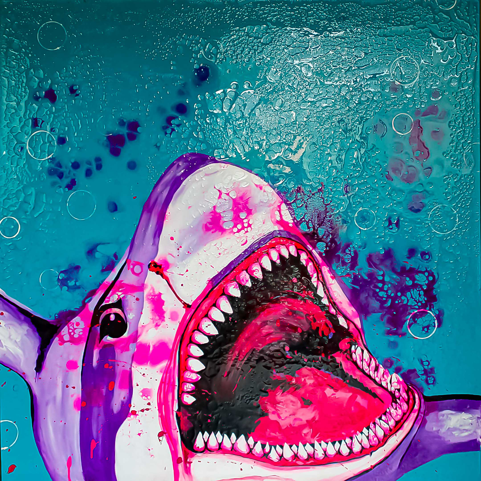 “Jaws 5.1” Bestiary Series/ Acrylic and resin on canvas/ 60 x 60 inch/ 2025